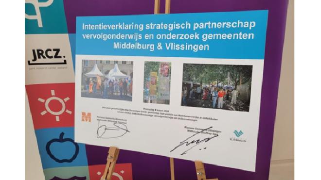 In het Joint Research Center Zeeland (JRCZ) hebben de Gemeente Middelburg en Gemeente Vlissingen woensdag de intentieverklaring strategisch partnerschap vervolgonderwijs en onderzoek ondertekend. Hiermee onderstrepen ze dat ze Walcheren samen verder willen ontwikkelen tot een sterke, toekomstbestendige onderwijs- en onderzoeksregio.
